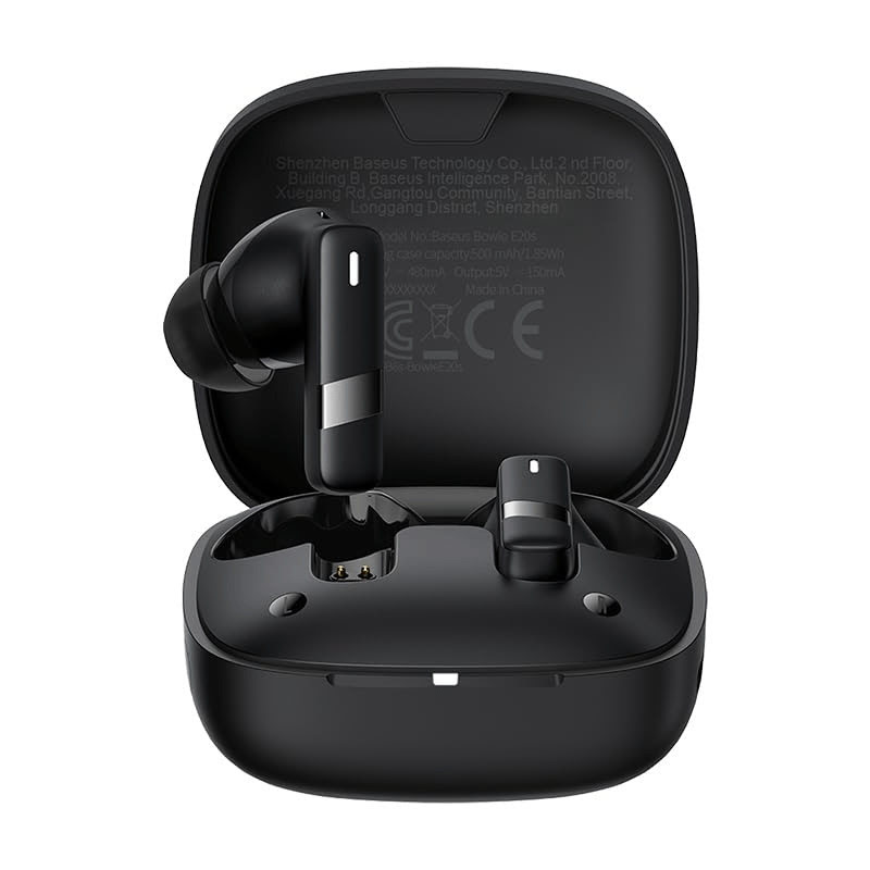 The Baseus Bowie E20s TWS Earbuds stand out with their modern, minimalist aesthetic and ergonomic design. Built using high-quality ABS + PC materials, these earbuds are both lightweight and durable, weighing just 50g (including the charging case). Available in two elegant finishes — Stellar White and Cluster Black — the Bowie E20s complements every style while offering a secure and comfortable fit for long listening sessions.