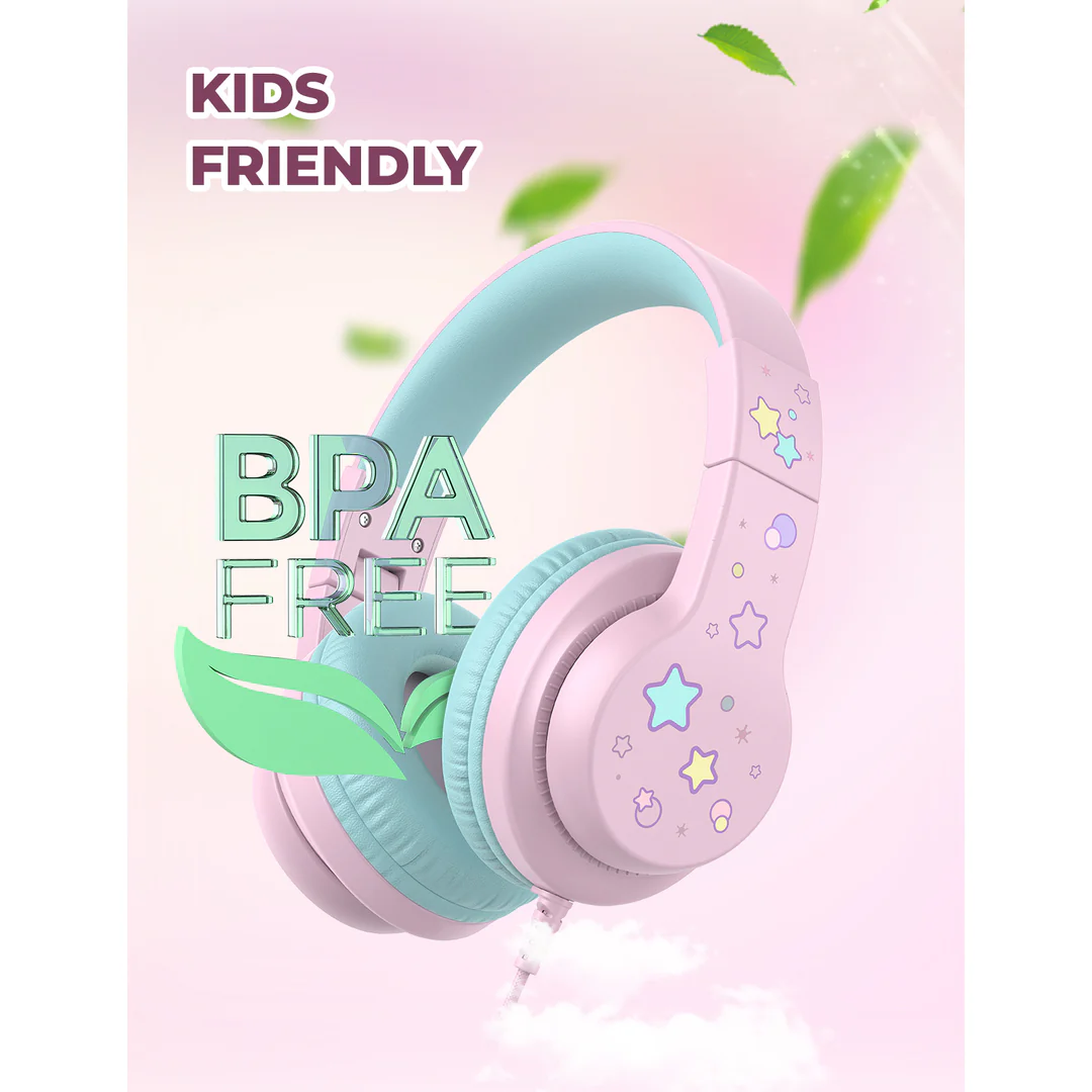 Weighing only 185g, the iClever HS19S is lightweight enough for kids to wear comfortably for hours. The foldable structure allows for compact storage and easy portability, making it an excellent companion for travel, road trips, or daily school use. Built from durable Acrylonitrile Butadiene Styrene (ABS) material, the headphones can withstand everyday drops and handling by children.