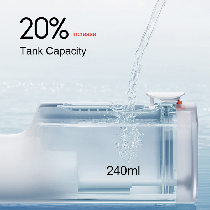 Upgrade the 240mL large-capacity water tank, and you can complete a meticulous and complete tooth cleaning by filling up the water, without adding water in the middle.