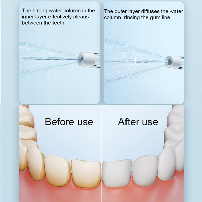 The newly upgraded 3-second crescendo, the water flow from weak to strong, prevents the rush from hurting the gums, and it is easy for beginners to use.
